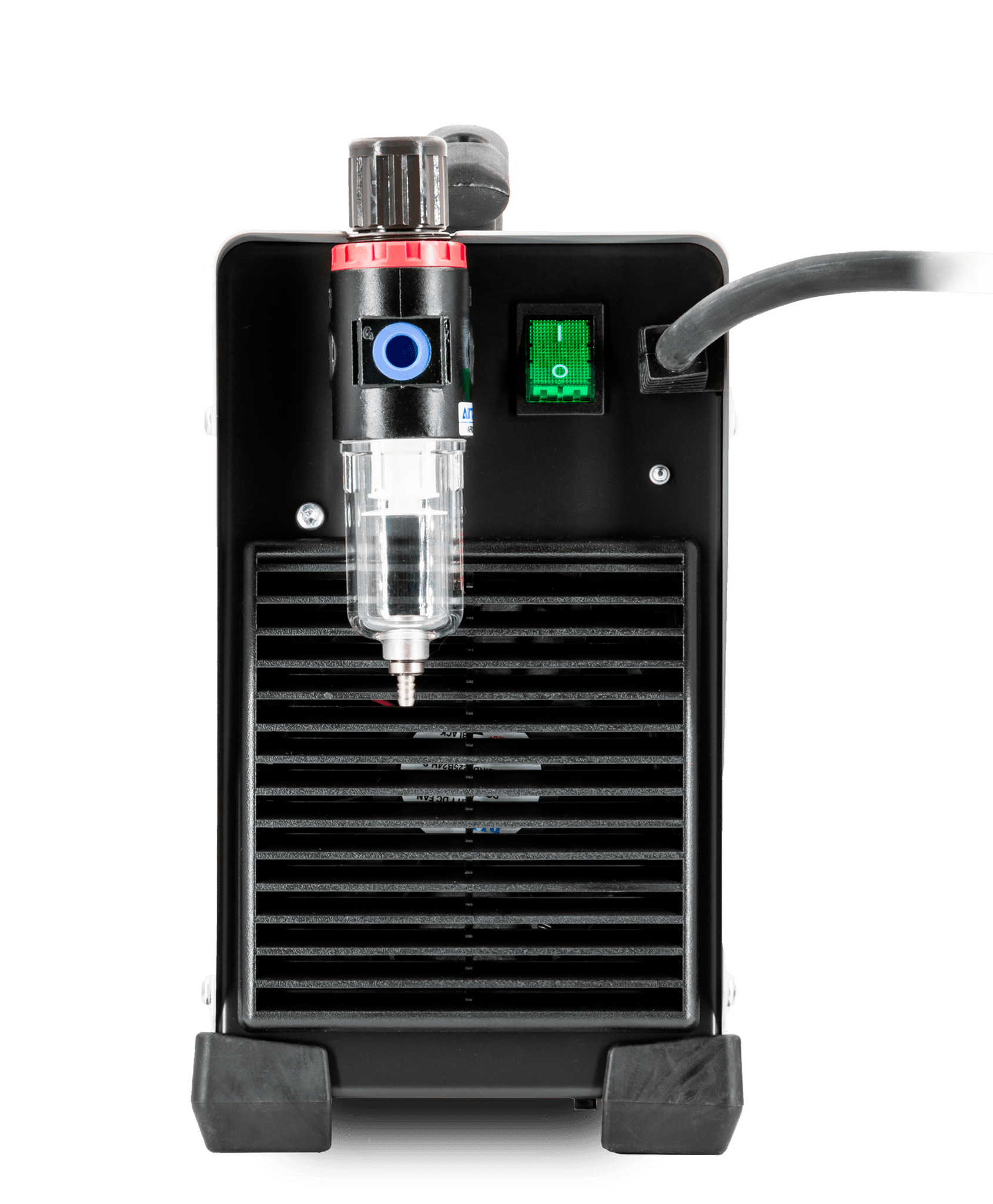 - Manually adjust the air pressure (2.5 < 6.5 bar) with a bargraph on the front panel.